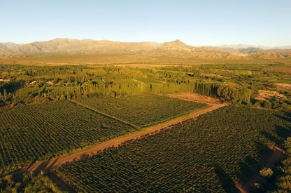 valles irrigados al oeste de la provincia, entre las Sierras de
